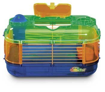 Super Pet Crittertrail Carry & Go Habitat Travel sized habitat perfect for all hamsters gerbils and mice. Carrying handle makes travel easy. Attach to other CritterTrail habitats to create more room for your pet to explore. Provides safe and secure environment for tiny pets. Comes complete with 4oz water bottle and a locking corner food dish. Enhanced door locks offer easy access and a secure closure to keep your pets safe. Improved construction allows top wire and bottom base to easily detach for effortless cleaning and maintenance. New narrow wire spacing design make these habitats safe for dwarf hamsters mice and other small animals. Actual size 8in long 12.5in wide 7.5in high.
