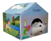 Disposable interactive houses for small animals. Stickers are included to use to customize house for your pet. Completely edible house and stickers - all safe, non-toxic ingredients. Made in USA. Small size for hamsters, mice and other pocket pets. Â 4.5in x 4.5in x 4in