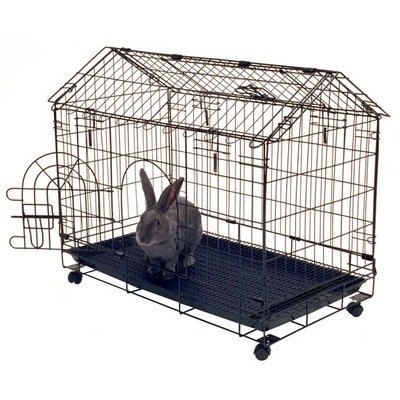 49960 Features: -Bunny house.-Frame design provides more room.-Allows bunny to stretch.-Easy to move your pet from room to room.-Easy to transport.-Has 2 doors, one on side and one of top.-Doors make it easy to remove and replace your bunny.-Durable plastic tray makes for easy clean up. Specifications: -Comes with 4 wheels.