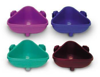SSR61962 Features: -Food bowl. -Available in assorted colors. -Dishwasher safe. -Two special brackets that securely fasten the bowl to any wire cage, simply detaches to make refilling fast and easy. -Unique corner design conserves precious cage space and keeps food from scattering. -Can hold up to 16 oz of food. -For small animals. Specifications: -Dimensions: 3.75" H x 6.25" W x 5" D. -Capacity: 16 oz..