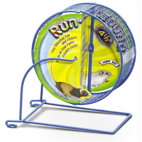 100079365 Features: -Mini run around wheel.-Provide free-wheeling fun for your furry friend.-Perfectly sized for dwarf hamsters, younger hamsters and mice.-Stylish wire wheels.-Covered in an extra-durable.-Easy to wash as well as rust resistant.-Super Pet's unique tail-safe and E-Z exit design.-Made with durable wire.-Encourage healthy exercise.-Diameter: 4.5. Options: -Available in assorted colors.